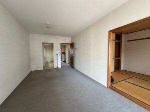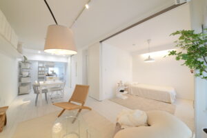 間仕切りドアを開ければ、2LDKから開放的な1LDKのように変化。