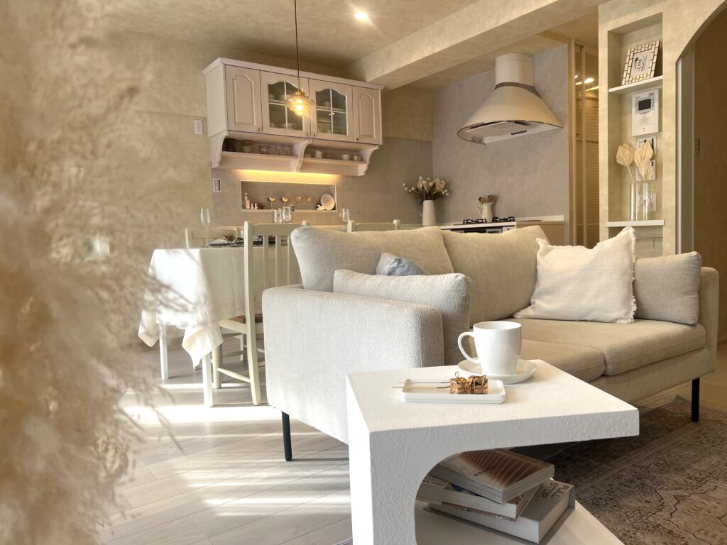 コンセプトは「働く女性の一人暮らしに適したリノベーション」。 帰るのが楽しみになる落ち着いたシャビーシックなデザイ...