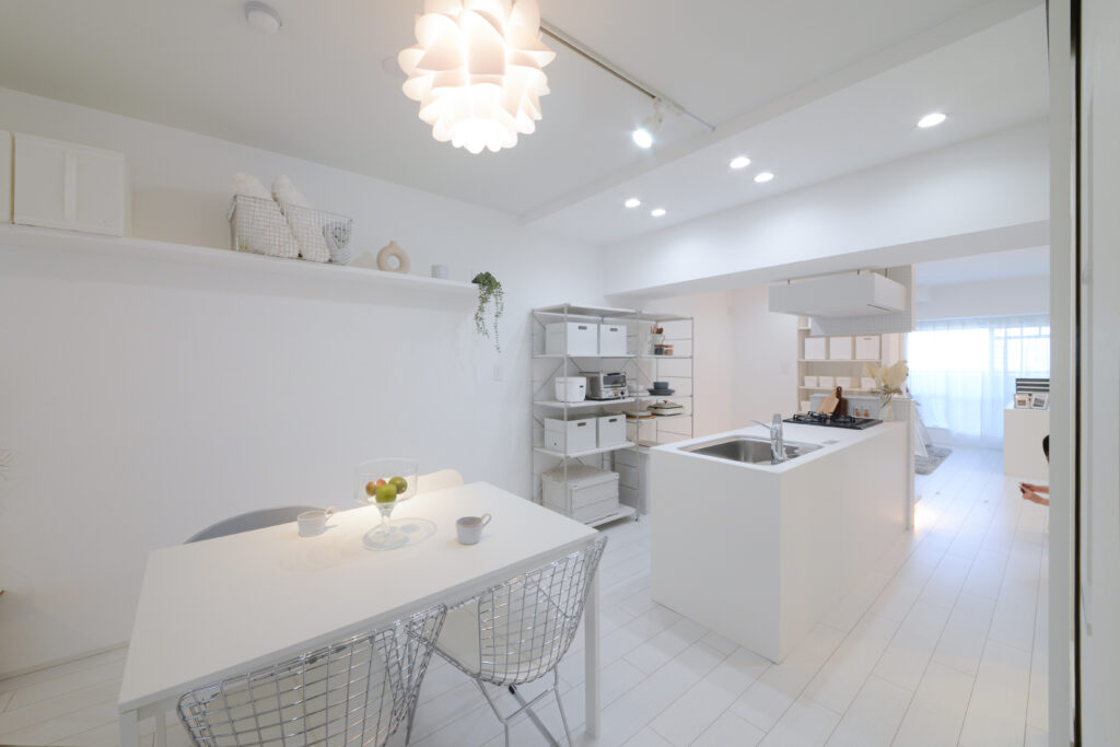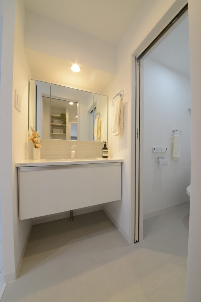 築39年のマンションをスケルトンリノベーションこちらは働く女性目線の女子建のモデルルームです! 生活動線や家事動線、各...