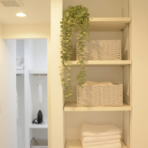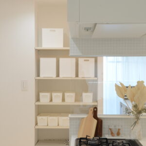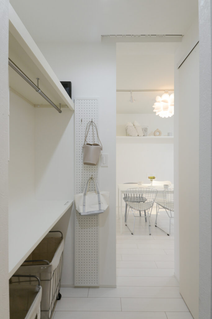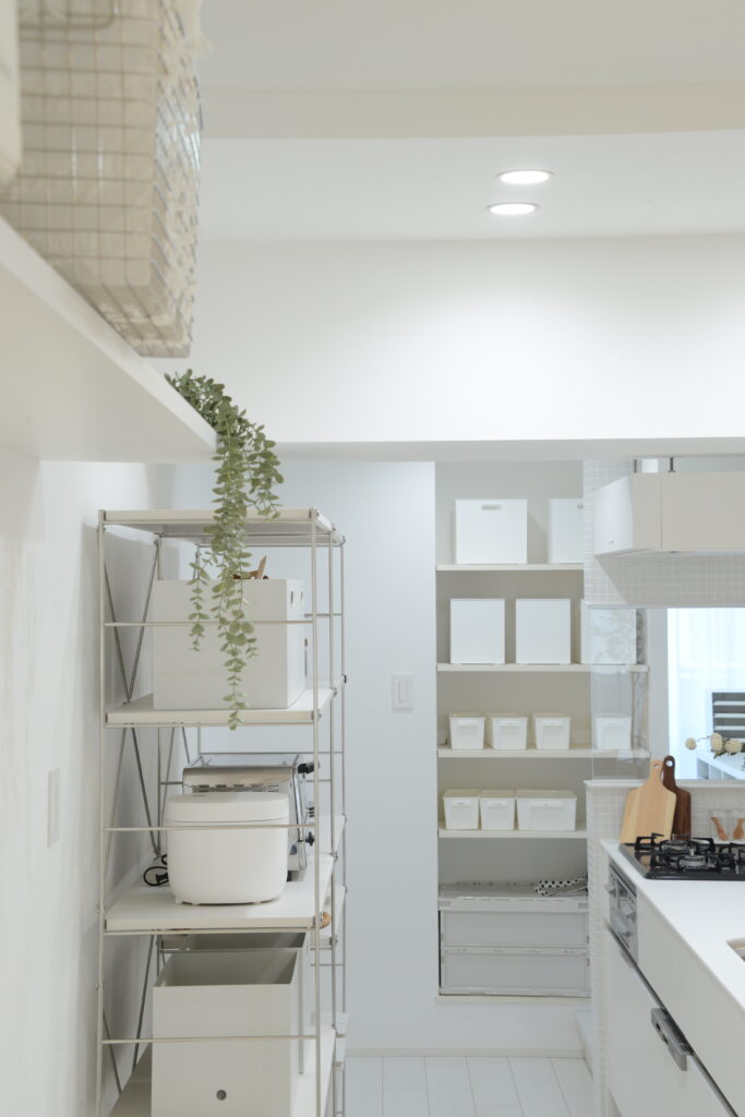 玄関近くにパントリーを設置することで、帰宅後すぐ片付けられる動線に