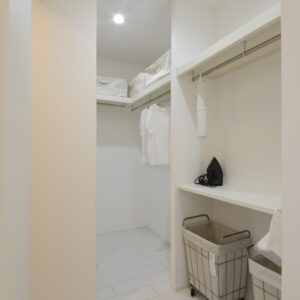 LDK近くにランドリーとクローゼットを!同じ空間にする事で家事楽動線に!