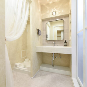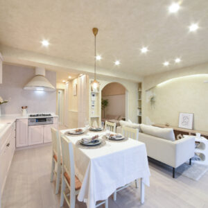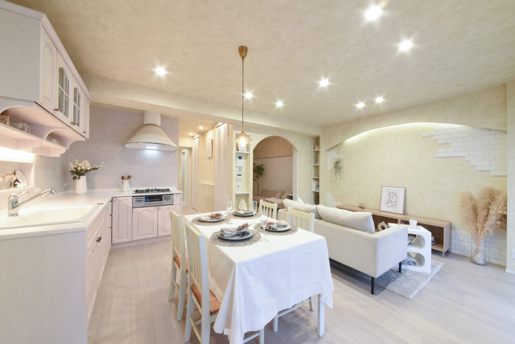 帰るのが楽しみになる落ち着いたシャビーシックなデザインを取り入れて、「暮らし」と「仕事」を両立できる空間づくりを行いました。