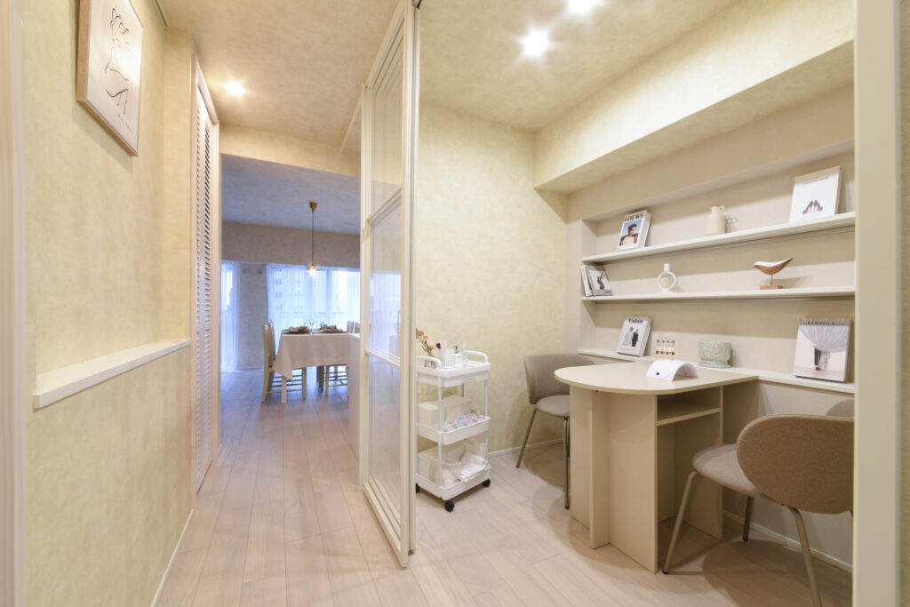 「暮らし」の動線とは異なる動線上に、個人サロンの開業などにも適したお部屋を設置。