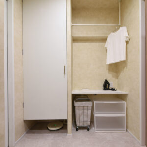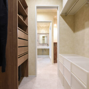 玄関→ランドリー→洋室へと繋がる回遊動線や、スペースを最大限に活かした立体設計で、63㎡とは思えない収納たっぷりのお部屋です。