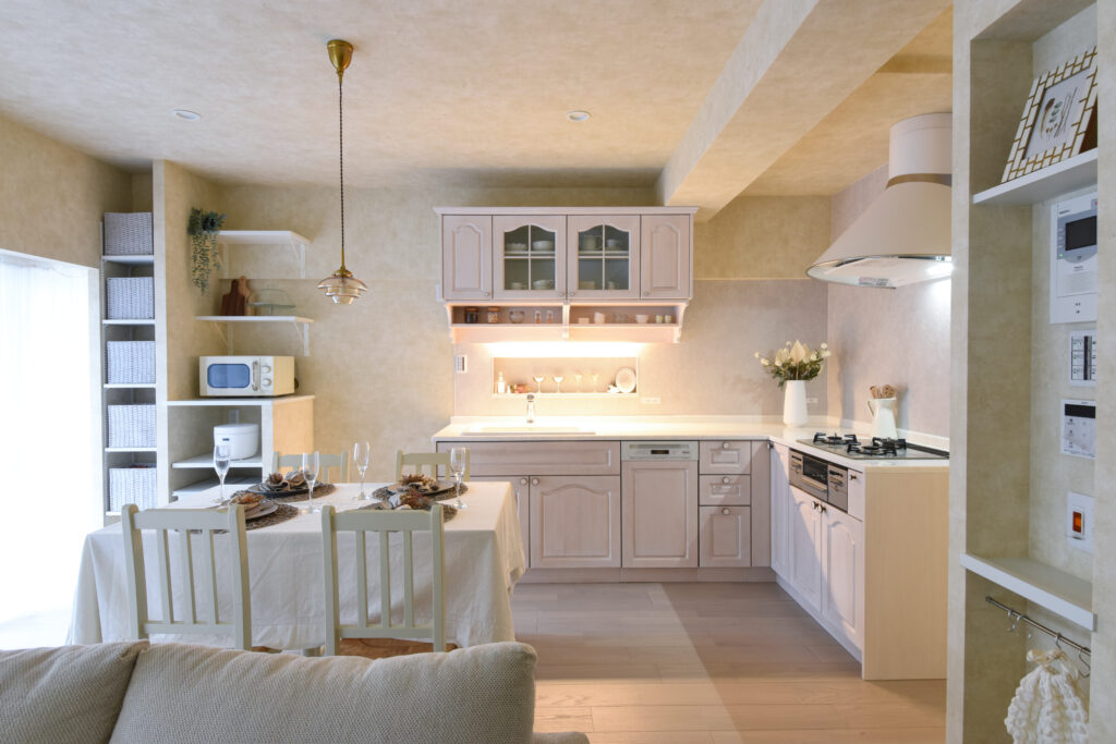 間接照明やニッチ収納で空間を最大限利用したL字キッチン